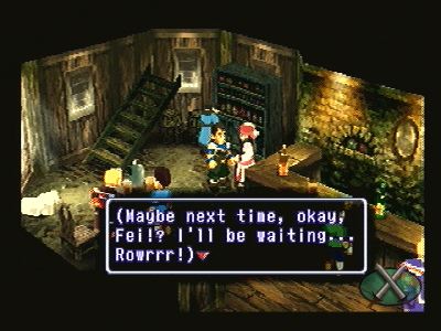 Some English dialogue bits suffer in Xenogears. For whatever reason(s) — maybe a smaller budget, perhaps due to RPGs still not being a megahuge mainstream presence back in 1997-98, or some combination of the two — the script has a number of encounters with awkward sentences, unnatural wording, and jarring changes of tone that were perhaps accidental or unrealized by the original translators. There’s nothing on par with “All your base are belong to us,” thankfully, but the game can sometimes be vague or unclear, which doesn’t help a game whose story is already a little hard to take in. Most of these problems don’t exist in the Japanese version, but the complicated nature of the plot and subject matter will be discouraging, even to many players who’ve imported other games. Thankfully, even with the occasional funny-sounding script, the meaning of a given sentence remains clear, especially in the cutscenes and most important moments of intra-party discussion.