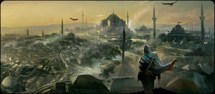 Our E3 trailer is actually the beginning of the game, we just released the extended trailer, and that is how it begins. As soon as you start playing Ezio, boom, it pops right into the middle of action. A lot of people are speculating: “Will it begin in Italy?” We thought about that, but decided against it as we wanted to focus our resources on creating all of these new assets and not reviving all of these old ones for new purposes. We wanted everything to feel really fresh right off the bat. Even when you first arrive in Masyaf, there’s snow on the ground, the wind’s blowing, there’s a blizzard – it’s a totally different Masyaf than you’ve experienced. So the game begins with that first sequence, almost like a good Indiana Jones movie, y’know how they always begin right in the middle of some action? Like the beginning of Raiders of the Lost Ark, he’s searching for this cool thing, some stuff goes down right away, and then it starts getting into the real adventure. That’s how we structured it – big exciting opening, gameplay immediately, there’s already a problem. Wrap that up in the first sequence and then on to Constantinople and where you spend most of the rest of the game.