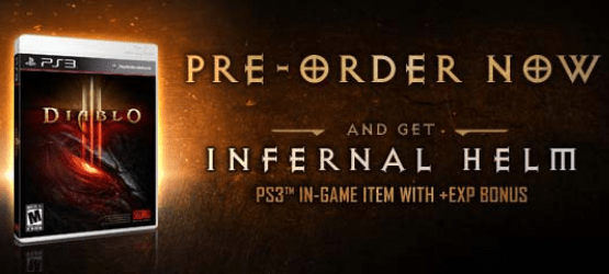 While still having an unconfirmed release date, the PlayStation 3 version of Diablo 3 has been given a pre-order bonus of the Infernal Helm at a wide variety of retailers. This item “grants an experience point boost to any character who wears it, accelerating their progression as they rise in power,” so it helps you get stronger faster.
