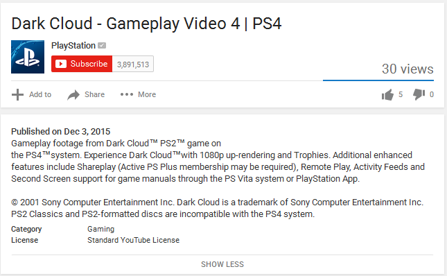 Last night, Sony reportedly published a Dark Cloud PlayStation 4 trailer on YouTube. They quickly removed it, but not before people were able to capture images of the video, revealing that the PlayStation 2 emulation on PS4 won’t support PS2 discs or PS2 Classics.