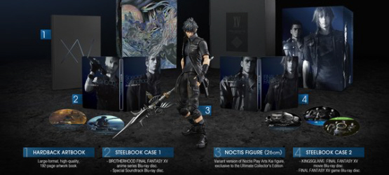 Priced at $270, the Ultimate Collector’s Edition includes the game, the Kingsglaive Final Fantasy XV Blu-Ray, the Brotherhood Final Fantasy XV Blu-Ray, the Special Soundtrack Blu-Ray, a Play Arts -KAI- Noctis Ultimate Collector Edition figurine, an exclusive Brotherhood & Kingsglaive steelbook, and all DLC bonuses from the other editions.