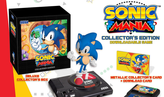 Along with a digital copy of Sonic Mania, the Collector’s Edition includes a 12-inch Sonic statue on top of a replicated but non-working SEGA Mega Drive console that plays the SEGA startup audio when the power switch is flipped and a SEGA cartridge cast with a gold ring inside.