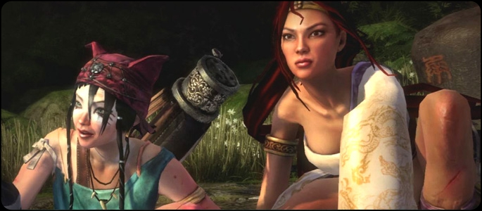 Along with all the hacking and slashing you will encounter some areas where you will require the use of a cannon, a handheld weapon, or a crossbow. The aftertouch system, which slows down time, is used to control these weapons/objects from a first-person perspective. It’s a unique take on bullet time that requires use of the Sixaxis to aim, and does provide much needed relief from the heavy combat segments. Nariko’s friend, Kai, is integral to this system as she carries one of the coolest crossbows ever seen. In fact, it’s almost bigger than her.