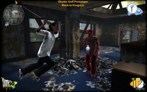“Ghetto Golf is an upcoming downloadable multi-platform title. We would like to tell and show you more and will as soon as we get our legal shit straight. Playable demos can be shown upon request.”