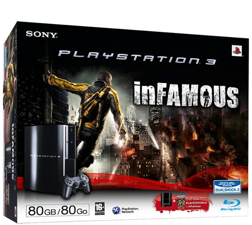 The first SKU is an inFamous bundle, which will feature a 80GB PS3, and a copy of the open-world action game. The second SKU is a Ratchet & Clank bundle. This bundle will feature a 80GB PS3, Ratchet & Clank: Quest for Booty, and an extra DualShock 3 controller.
