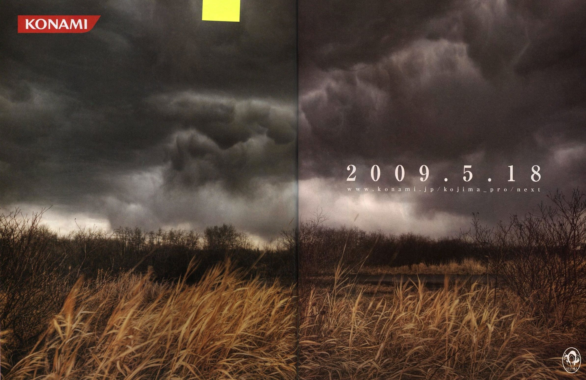 The advertisement shows dead brush surrounding a small lake, and dark, rolling clouds hovering above. Those who click on the image and look closely should be able to find a few secrets hidden in the photo. The planned unveiling date is May 18, 2009. So stay tuned on PSLS for more details on [shal]Kojima[/shal]’s new project.