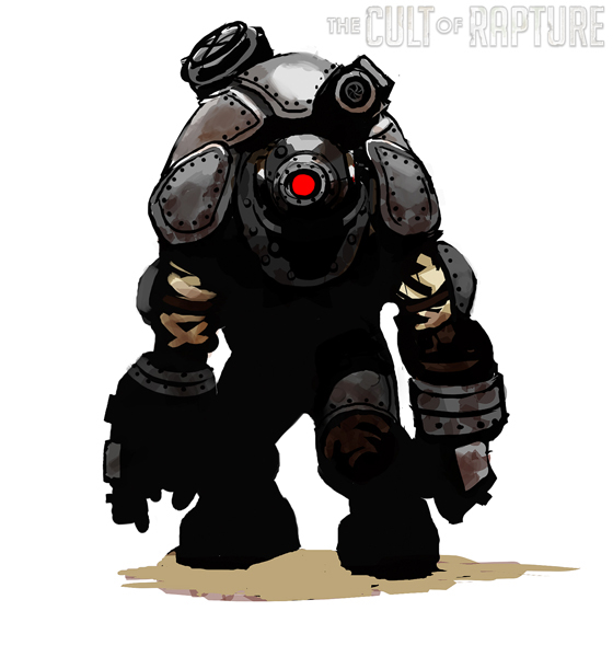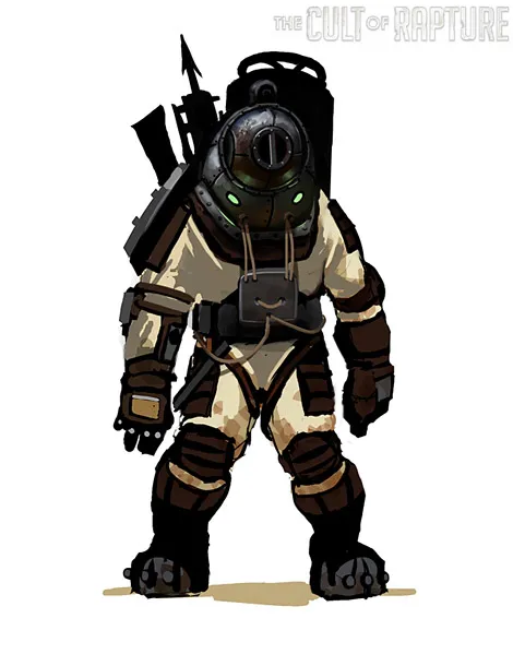 “Between the first BioShock and the sequel, you’ve seen a lot of concept art for Big Daddies. The logic behind this concept art went beyond different designs and suit combinations. The artists had to imagine what the very first Big Daddy would have on him — this Big Daddy had to feel like he was a rough draft or a work-in-progress, an amalgam of Big Daddies to come. The first Big Daddy was a test case, and in making the perfect prototype, 2K Marin drafted many, many prototypes themselves.”