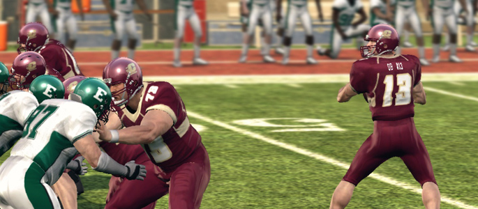To elaborate on some of the upgrades from the ’09 version, NCAA Football 10 looks better, controls better, and is a lot more realistic. The defense not only reads the player more accurately, it also adapts to the choices a player makes within the game. If there are only a select few plays that the player runs, the A.I. will quickly catch on and shut them down on the field with the necessary adjustments. To succeed, the player must know their play book particularly well. The days of successful “one trick wonders” are more or less a thing of the past. And it’s because of this that the game shrugs off the arcade-like feel of prior installments in the series.