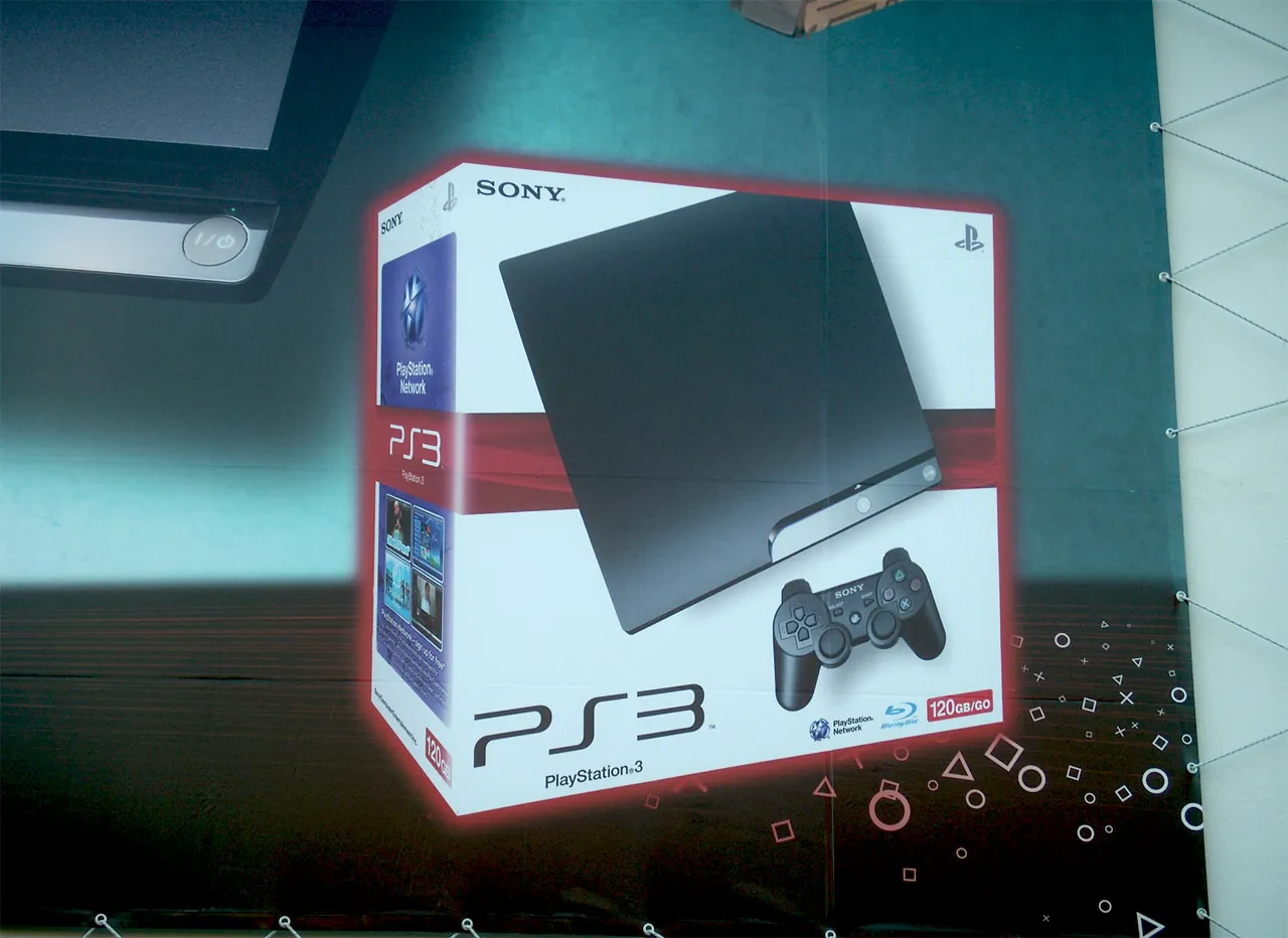 And the PS3 Slim news keeps on flooding in! This time, the packshot for the slender behemoth has been revealed! Presumably, this is the huge advertisement that greeted journalists vacating from the conference that stated “Watch this space.”