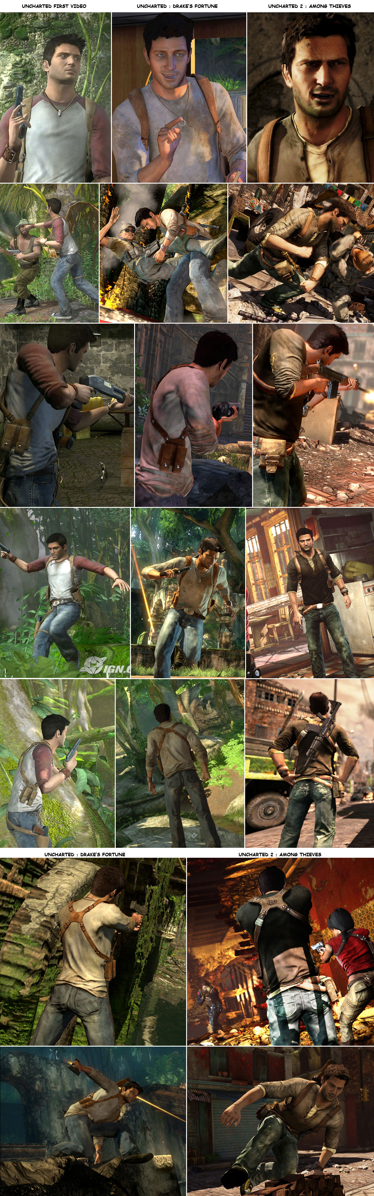 Check out the montage below that shows the evolution the Uncharted series starting with the first alpha feed evolving into the final version of Uncharted, and then into what is formally known as Uncharted 2: Among Thieves: