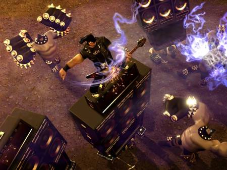 The whole game is in the third person, as are the RTS missions. In these battles, the player still controls Eddy, so it is up to the player to move him around the battlefield, have the army follow him, tell the soldiers where to attack, and then attack with Eddy himself. This gets pretty taxing from time to time, especially when trying to remember to use guitar solos that can aid the army. All that being said, once the player learns to manage all this, it becomes a lot more fun and rewarding, but it is still an unexpected addition which could be a turn off to a lot of gamers. RTS elements very rarely work on a console, and a third person view makes it even more difficult.