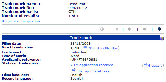 On the European Trademark Registry, Namco Bandai has recently registered the name “Dead Heat”.