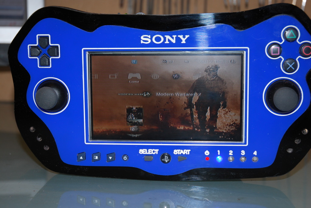 What you see above is the creation of a modder who goes by the benheck forums screen name techknott. If you’re wondering how in the heck he stuffed a PS3 into something smaller than the PS3 Slim, well…He didn’t. This is a Wireless Visual Interface, meaning the handheld is sort of a “dummy” unit that is basically a controller with a screen. A transmitter is hooked up to the PS3 and the audio and video is beamed over to the controller. Still mightily impressive, and techknott has posted that he plans to sell it.