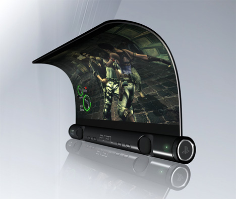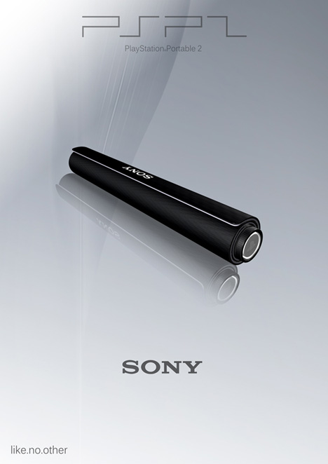 The PSP’s design was just updated with the PSPgo, but designer Tai Chiem is already thinking of the PSP’s next make over with his concept of the PSP2. Featuring a flexible OLED that can be rolled around the actual PSP unit itself for maximum portability, stereo speakers on either side, a jog wheel, dual analog sticks and more. The unit powers on sending an electric charge to the display stiffening the 3mm thick flexible OLED screen, perfect for gaming on the go.