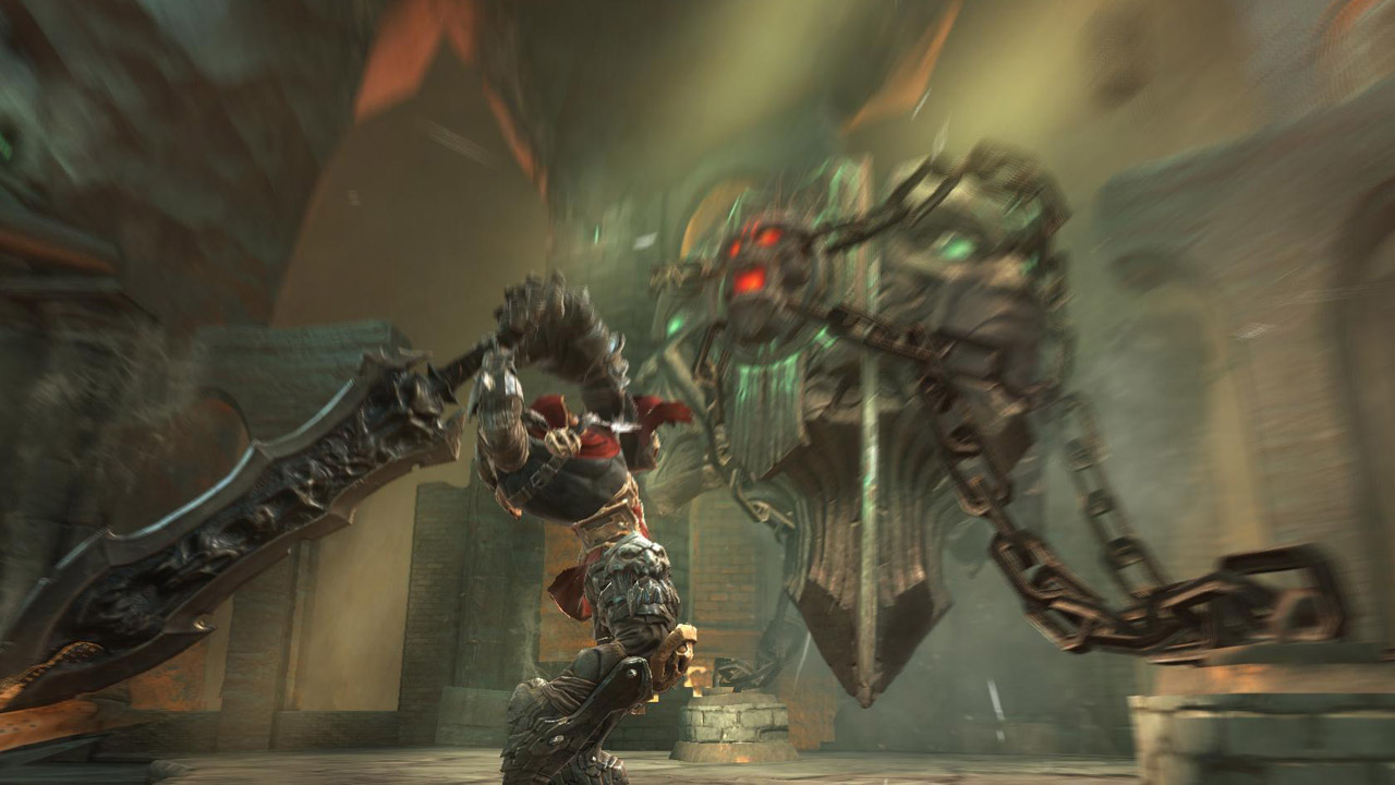 Visually, Darksiders impresses, but the early stages are underwhelming. Especially during the first stage, the textures lack variety, and the level design doesn’t foreshadow the greatness that proceeds it. As the story unfolds, however, the areas begin to look better, and the level design becomes less of a point A to point B experience. There is a nice use of effects that do not seem to slow the frame rate much. While the frame rate is variable, the game runs solidly, and enemy and character animations exhibit polish. For example, some enemies come streaming down from zip-lines and aggressively attack you.