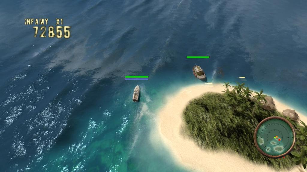 The game is an arcade style shooter where you command modern pirates in their attempt to relive the ways of their ancestors as they raid cargo ships and battle patrol boats. As you defeat ships, your “Infamy” rating increases, with your goal being to rule the online leaderboards as the most infamous pirate in the game. The game will feature plenty of modes, with a single player campaign, an infinite free roaming mode, and an arcade style quick game mode. Locally played multiplayer modes include co-op and one-on-one modes. The game will also allow players to unlock bigger boats and weapons as they complete the campaign missions.