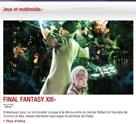 Final Fantasy XIII, the latest game in the long running franchise will be hitting western shores March 9th for the PS3, 360 and PSP? You might want to take a second glance because that did just read PSP. The version is apparently in the works if we are to believe a listing on the Official Sony Belgian website.