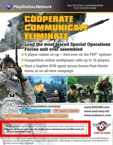 Anyone wanting to shoot it up online with the latest installment of the PSP franchise will first have to register the game through the PlayStation Network. While digital copies will do this automagically, UMD versions of the game are packaged with an activation code. “But what if I buy it used,” you ask? Well, Sony’s gotcha covered and is ready and willing to serve you up another activation code–for a small $20 fee, of course.
