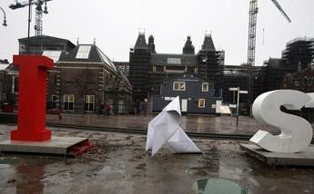 Amsterdam’s famous Museum Plaza, Museumplein, is well known for its iconic “I amsterdam” which attracts hundreds of visitors who often pose on the letters. Sony, or another unknown party, appears to have ‘stolen’ the letters A and M from the landmark, and left Heavy Rain’s trademark origami bird in its place.