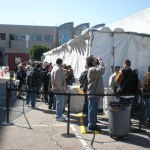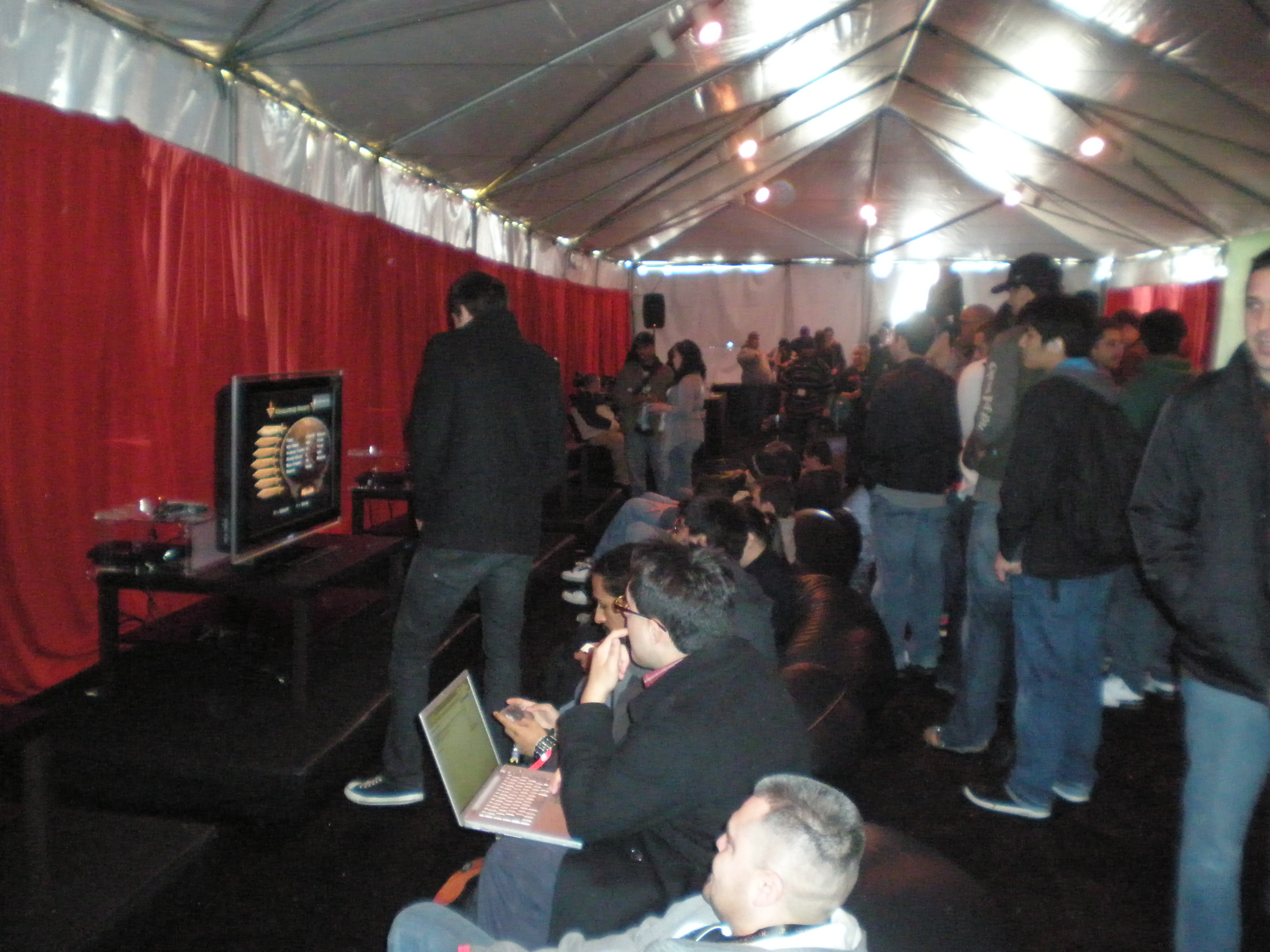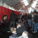 Gamers started lining up at 5 AM (yes, 5 AM), and the tent flap to the pre-party tent didn’t even open until after 1 PM. The PlayStation Blog crew was nice enough to feed the hungry masses burritos and chips and also provided plenty of drinks and free wi-fi while they waited.