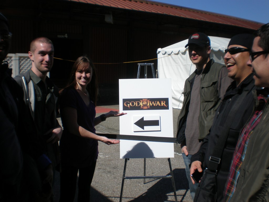 As the pre-party started wrapping up, and our God of War III event time was about to begin, everyone was encouraged to find their inner “Ghost of Sparta” and pose for a group photo.