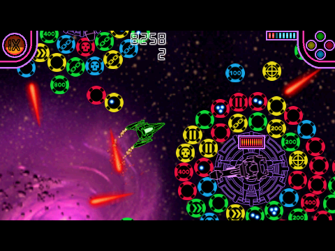 Stellar Attack expertly blends old-school deep space shoot-em-up action with classic puzzle gameplay. Use your skill and reflexes to destroy chains of coloured orbs and deadly gun turrets. Eliminate orbs with your coloured lasers to expose the turrets and blow them out of orbit, but avoid the homing missiles and cannon fire that threaten your fragile ship. One missed laser could break your combo in this classic score-chasing action-puzzle game!