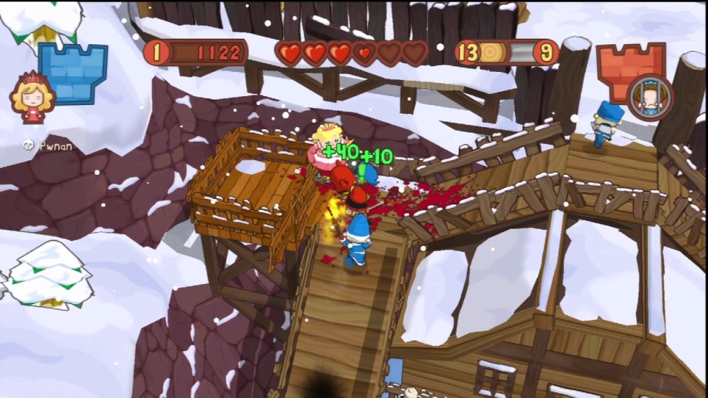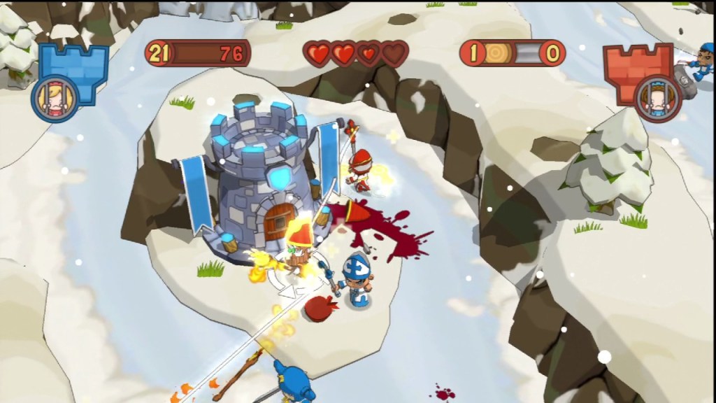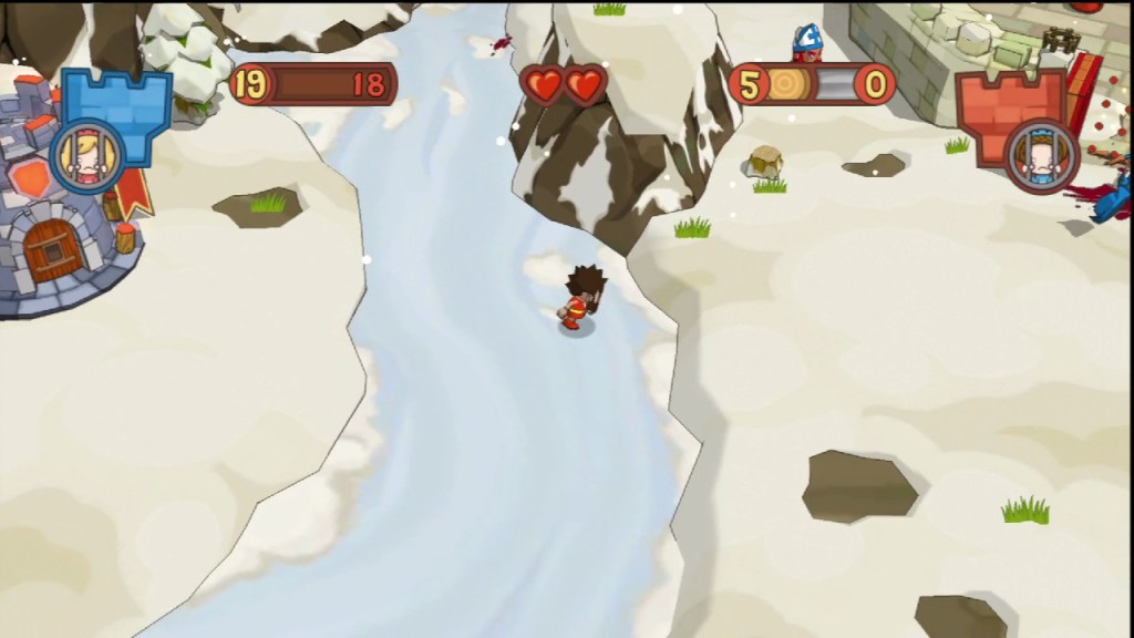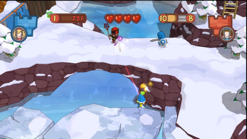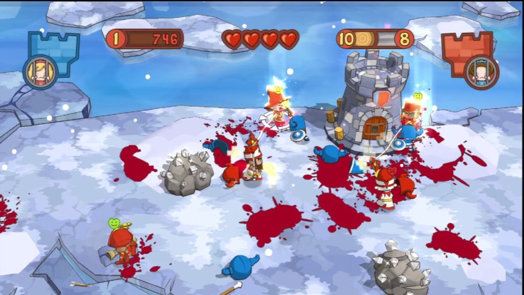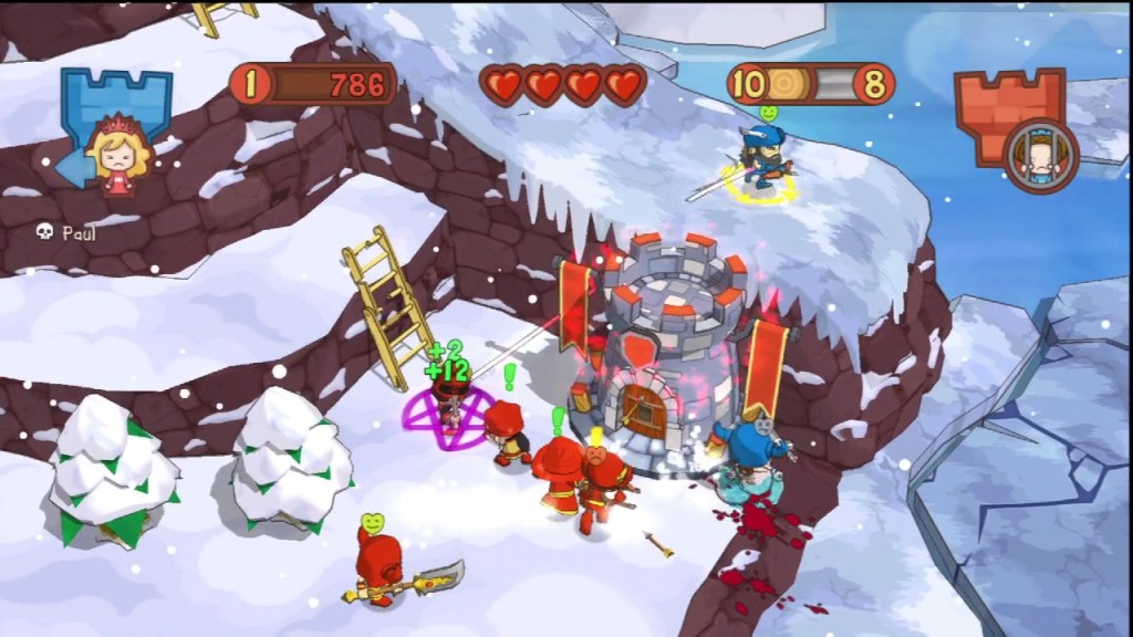 As Worthplaying points out, this patch adds two more maps to the roster.  Candy Mountain and Frost Bite are both cold weather areas so you will have to careful of your environment. Slippery ice can lead you to a chasm of death and the water is cold enough to slowly kill you.  Each map feature the amenities you are used to in Fat Princes with a host of towers to take over and the trusty catapult.