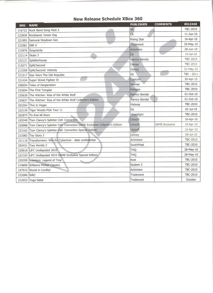 The list of release dates covers titles from March to TBA 2010. Among these titles, October seems to be their biggest resting place, with Band Hero 2, Call of Duty 7, DJ Hero 2, and Fallout: New Vegas. Strangely, a listing for James Bond Racing was posted as well, which is currently an unannounced title. Apparently, this racing title will hit in October as well. For September, we’ll be seeing Brink, and Crysis 2 – which received an exact date of the 24th. The most surprising listing out of them all is most likely Metal Gear Solid: Rising, a title we didn’t expect for a while now, considering it has almost no information whatsoever. Rising is set to release the same day as Crysis 2, September 24th.