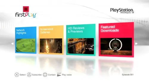 PlayStation owners can download a new episode of FirstPlay via the PlayStation Store every Thursday. Alternatively, you can purchase a three month subscription for £8.99 (€ 10). FirstPlay consists of video reviews and previews, interviews, and content from the PlayStation Store, and will also give subscribers early access to exclusive demos and downloads, a’la Qore.