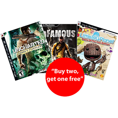 Sony recently expanded the Greatest Hits lineup of games last week adding such stellar titles as Killzone 2, inFamous, and LittleBigPlanet: GOTY Edition. A certain online retailer has a fantastic deal for any of you who might have missed these bestselling titles in the past with a buy 2, get 1 free deal.