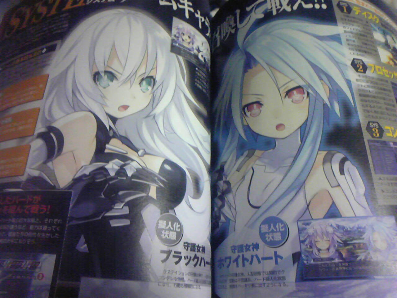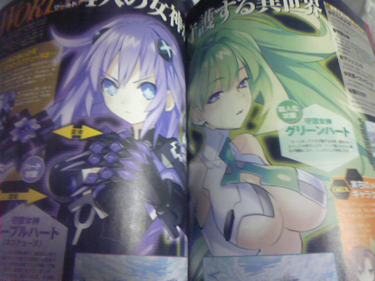 The game takes place in a universe known as Geimugyokai, or the games industry. Four different goddesses (potentially pictured above) each rule a different planet and are given different colored names – Green Heart, Black Heart, White Heart and Purple Heart. The planets’ names are: Lasdition (PlayStation 3), Rinbox (Xbox 360), Ruwii (Wii), and Platetume (Unknown).