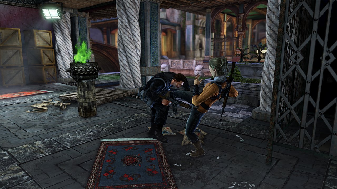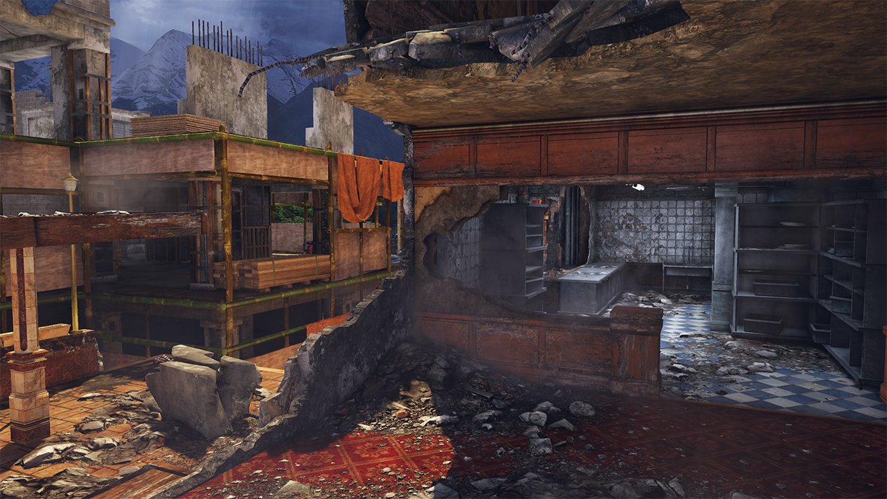 Set at dusk amongst the courtyards and display cases at the site of Drake and Flynn’s heist, The Museum provides players with a mix of intense gameplay covering traversing across rooftops, dodging gunfire through twisting corridors, and close quarters fighting. Players need to watch their backs as there are numerous flank routes in all parts of this circular map. Players should also learn the secret climbing routes that will allow them to get the drop on their opponents.