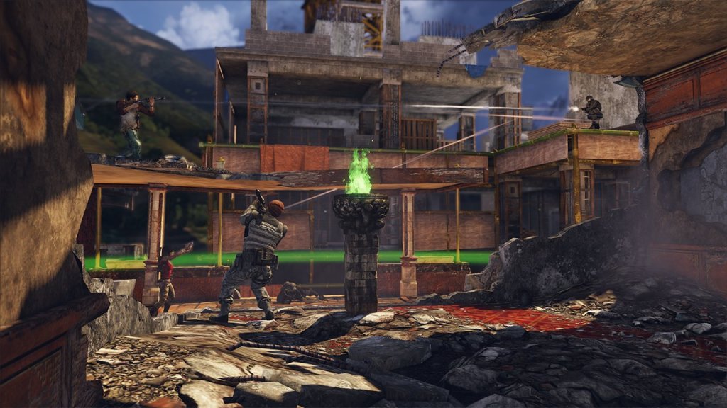 Set at dusk amongst the courtyards and display cases at the site of Drake and Flynn’s heist, The Museum provides players with a mix of intense gameplay covering traversing across rooftops, dodging gunfire through twisting corridors, and close quarters fighting. Players need to watch their backs as there are numerous flank routes in all parts of this circular map. Players should also learn the secret climbing routes that will allow them to get the drop on their opponents.