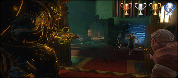 Before I continue on to the multiplayer trophies, I have a word of advice to bestow upon you. Once you start multiplayer, make sure to experiment with Plasmid and Weapon combinations as well as the Tonics. Experiment and find the Plasmid and Weapon combination that works for you. I personally used the Incinerate Plasmid with a Shotgun(you can also use the Winterblast instead of the Incinerate Plasmid). Always be on the lookout for the Big Daddy Suit, as it respawns every two-three minutes after the start of the game and after a Big Daddy has been killed. The Daddy Suit only respawns in three-four places per level (always the same places), so once you get used to where the Big Daddy Suit respawns, it should be easy to rack up ADAM kills, but be careful not to overheat the Rivet Gun and use your Proximity bombs wisely. A fast way to also level up is to complete trials–they offer you ADAM for every completed trial, so try to complete as many as possible. Tonics are also very important–make sure to pick those which accelerate health regeneration and photo research, and the third can be any other tonic that suits you. And without any further ado–the online trophies.