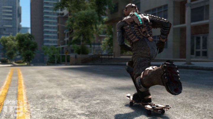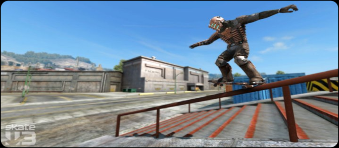 Skate 3 producers have many gamers in stitches today as they released a ton of screen shots for the game with players tearing up the asphalt as none other than Isaac Clarke from EA’s critically acclaimed Dead Space franchise.