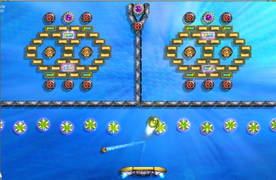 For an additional €1.99, you get access to 50 new levels. They do not seem to have an overall theme, other than being extremely complex and rewarding to finish (or, if you’re not a fan of the genrea, boring to get to the “easy exit” token by clearing most of the bricks). There are also new inventive powerups, such as “balloon,” which makes the balls float like helium-filled balloons, jumping around upward for a while, and “barrier,” which spawns two transparent walls from the bottom of your ship to the top of the screen, and any balls contained within act as though the transparent wall were solid. It is very useful in situations where you are trying to hit a lone brick.