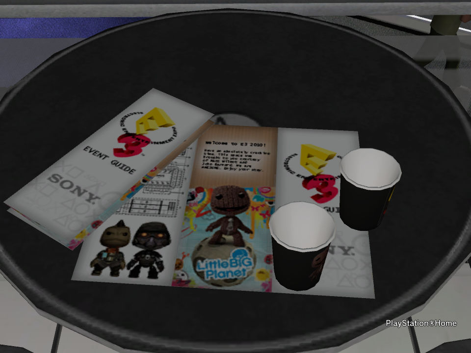 Did we mention that this space is detailed? Yes, everything from the Gran Turismo 5 race car kiosks down to the E3 cups and fliers are present, it’s insane. There is also a VIP section located on the 2nd floor with behind-the-scenes trailers for the upcoming Playground and Midway public spaces. Upon entering the VIP area, users will be awarded with in-Home 3D glasses and E3 2010 threads. In order to access the VIP area, users need only watch each of the seven trailers on the show floor. As users progress, an indicator will pop up notifying users when each of the following seven trailers have been considered watched: