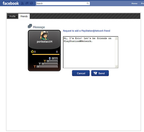 Adding to the ability to post trophy and PlayStation Store activity onto your Facebook news feed which was ushered in with firmware 3.10, the PS3’s Facebook integration is taking the next step in socializing the PSN experience. Sony is releasing a PlayStation Network Facebook application that gives users the ability to post their PlayStation Network profile, along with a full trophy card, on Facebook. Find out which of your Facebook BFFs are on the PlayStation Network and send them an invite using this new application. Once your Facebook friends are added to your PSN friends list, you can check to see if they’re online.