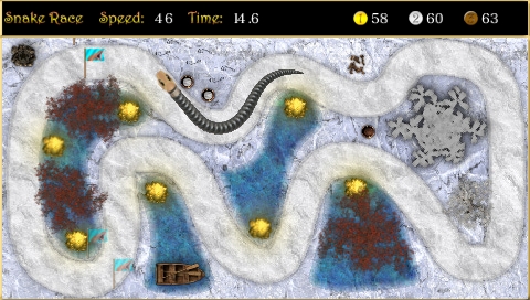 With five different game types spread out over 75 different levels, there is a lot of content here. If you perform well enough in a given event, you are awarded a gold, silver or bronze medal and accompanying levels of experience points. When you level up, you are rewarded with a new set of five levels to complete and occasionally some new armor for your snake. It should be noted that the first level of progression can be tedious to get through, since it requires that you are nearly perfect on each of the levels. Things do open up a bit after a few levels of progression, though, so there is nothing here that is too challenging.