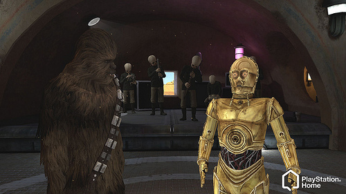 The Mos Eisley Cantina will be the latest to Home soon. For those of you who need a reminder, this is where Luke and Obi-Wan meet Han for the first time on Tatooine in Star Wars: A New Hope. Yeah, it doesn’t have much to do with ESB, but hey, a new public space is always welcomed in PS Home. The Mos Eisley Catina is faithfully recreated starring Figrin D’an and the Modal Nodes house band and Wuher, the bartender who also happens to hate droids. As you can see in the screens, the team at LucasArts did one heck of a job transferring the location to the digital world.