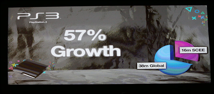 SCEE’s main man Andrew House took the stage in Germany this afternoon, opening up the show with the latest sales figures surround the PlayStation 3 and its massive jump in popularity after the release of Sony’s new ‘Slim’ model.