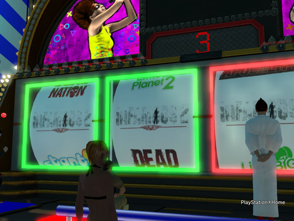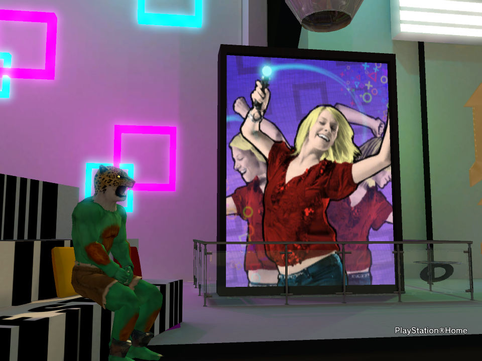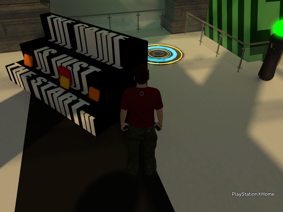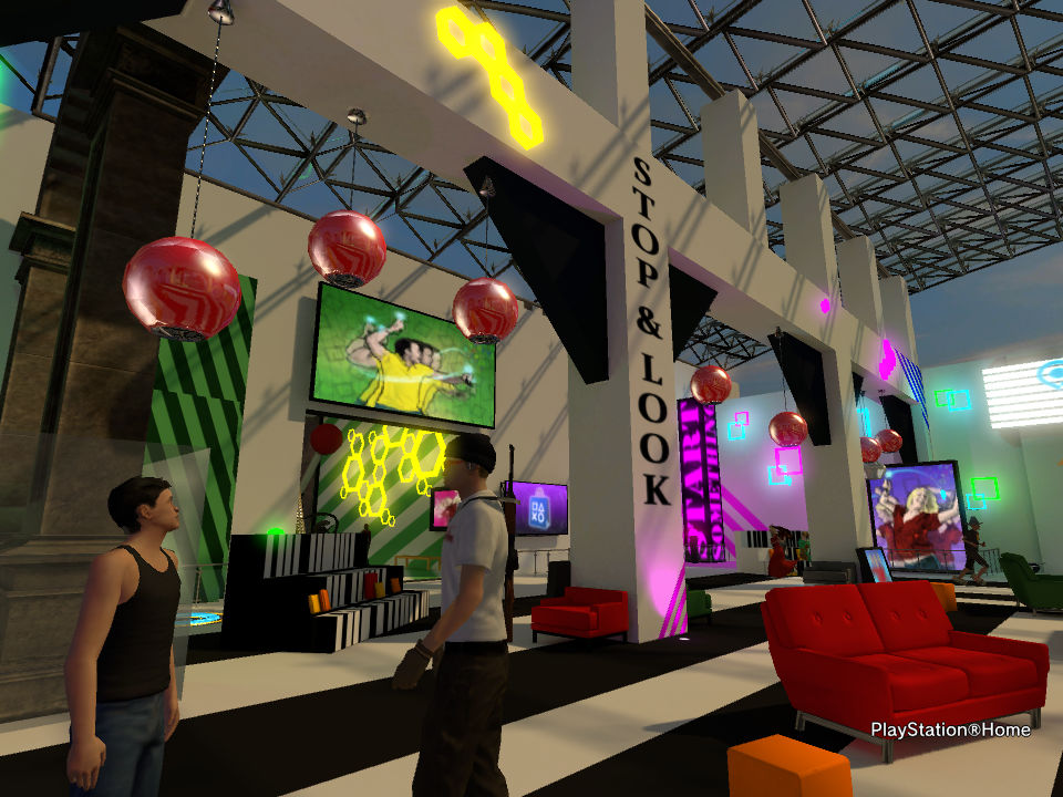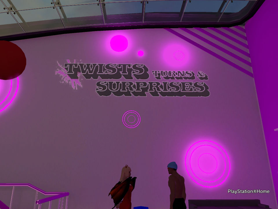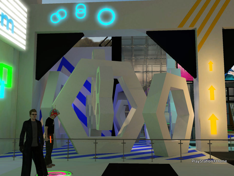 Upon entering Home’s Gamescom inspired space, simply entitled ‘The Gallery’, the first thing most will notice is the exceptional modern design and and PlayStation themed items throughout. Whether it be the entrance, which is flooded with familiar PlayStation controller logos, or the gigantic PlayStation Move controllers found all around, this space is mighty pretty. There’s also a very short trailer from Gamescon playing in the center of the room, but nothing worth seeing, really. Next comes the space’s music, which conveys an overall “techie”, yet calming theme, with the second tune made up from a slowed down, slightly remixed version of the music heard in Home’s bowling alley, which is quite a soothing treat for the ears.