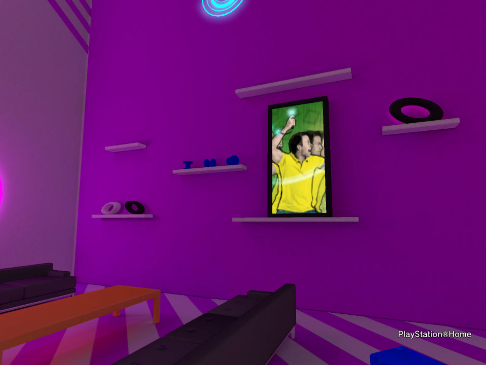 Note that these aren’t the same picture frames which display images from your HDD, but rather pieces of art with glass covers to hang around your personal space. One cool thing is that the Infamous 2 framed picture actually shows the first “new” Cole, as opposed second “new” Cole, but that’s pretty much it concerning free items in the space. There is, of course, a commerce point to purchase furniture items found within the space like rugs and couches, although one interesting inclusion was the PlayStation Move motion controller for $.99, which was initially a free obtainable item, given away during E3 2010 in the E3 event space.