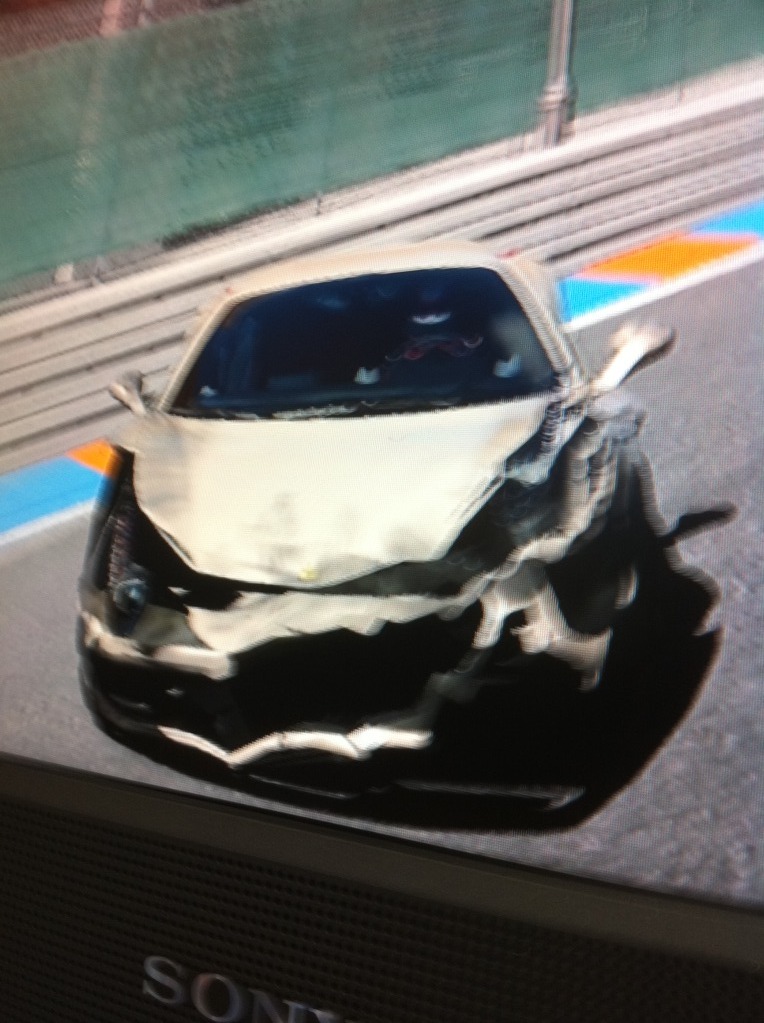 Car lovers (and blurry-cam haters) out there, you may want to avert your gaze, because some recent off-screen pictures have surfaced showcasing the damage modeling that will come with the retail version of Gran Turismo 5. This marks the first time the popular racing series will ever showcase damage to the cars within the game. Take a look after the break, but don’t say we didn’t warn you!