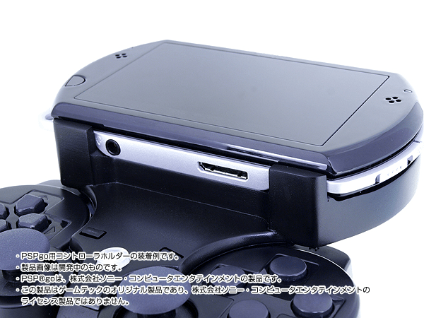 The accessory maker is taking pre-orders for a PSPgo controller holder that physically links a PSPgo to a DualShock 3 controller. You’ll still have to utilize Bluetooth for a connection to transfer button presses to the game. The controller holder essentially holds both devices in place. Gametech will be using an unused patent application filed by Sony which connects a regular PSP to a PS3 controller.