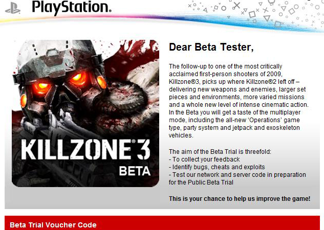 Courtesy of Meodia, a private beta invitation image for Killzone 3 can be viewed below.