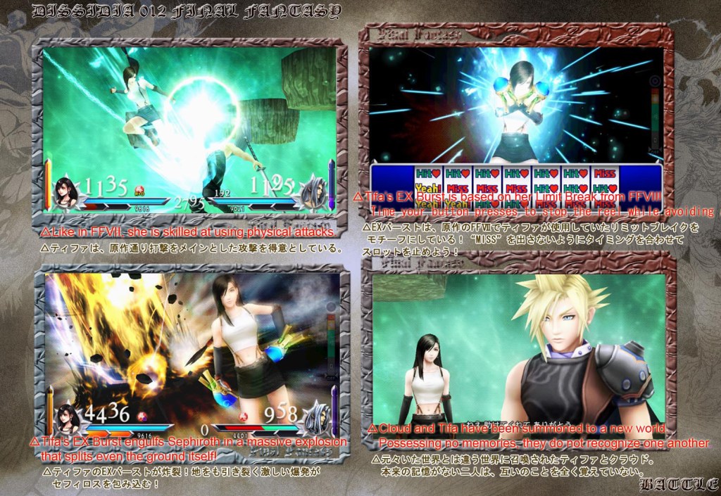 Previously, we reported that Tifa would be a playable character in Dissidia 012 [duodecim]: Final Fantasy. Square Enix has decided to make sure that their fans get a look at Tifa in action.Square Enix has released a few game screens and artwork of Tifa in Dissidia 012. Tifa is shown utilizing her physical attacks, her EX Burst based on her limit break from Final Fantasy VII and engaging in one-on-one combat with Sephiroth himself. And one of the questions fans have asked after seeing the trailer is finally answered: Why didn’t Tifa recognize Sephiroth?