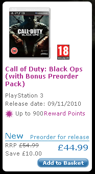 GAME’s “strategic” pricing seems very questionable though. Some of their competitors, such as Amazon, have Black Ops being priced about £5 cheaper at £39.90.
