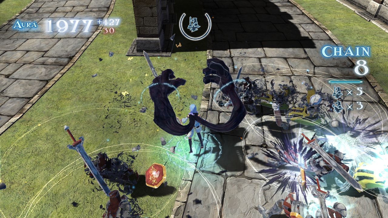 In most games character damage is conveyed to the gamer by some sort of power or life gauge. Not so in Malicious. For this game, the development staff decided to take a different approach; one of having you simply fade away. This ties in beautifully to the story since you’re a spirit who has assumed human form to fight off the Malicious.As you progress through the story and use your “Cloak of ash” to attack and chain combos, you build up Aura. Aura can be used recover to solid form after fading, or as a power up to increase your attack strength. No matter how much Aura you have though, your clothes will not reform around you. Even down to using your Cloak as a chair, Alvion has their own vision about what a PSN title should be — and it looks good.