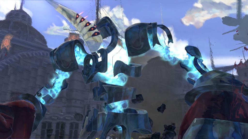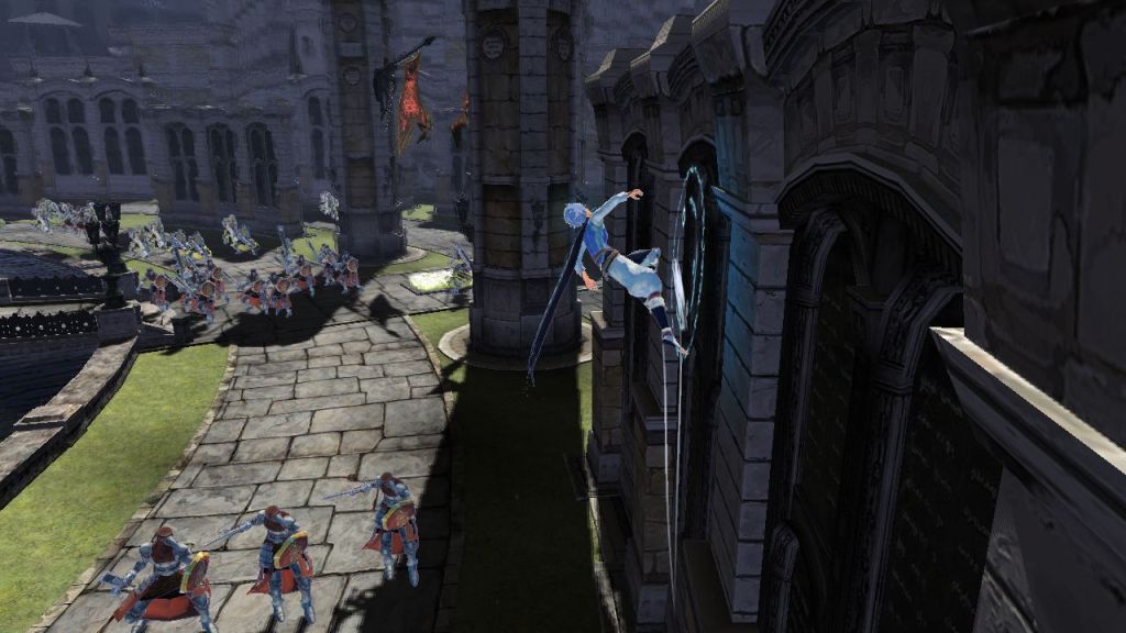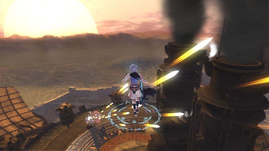 In most games character damage is conveyed to the gamer by some sort of power or life gauge. Not so in Malicious. For this game, the development staff decided to take a different approach; one of having you simply fade away. This ties in beautifully to the story since you’re a spirit who has assumed human form to fight off the Malicious.As you progress through the story and use your “Cloak of ash” to attack and chain combos, you build up Aura. Aura can be used recover to solid form after fading, or as a power up to increase your attack strength. No matter how much Aura you have though, your clothes will not reform around you. Even down to using your Cloak as a chair, Alvion has their own vision about what a PSN title should be — and it looks good.